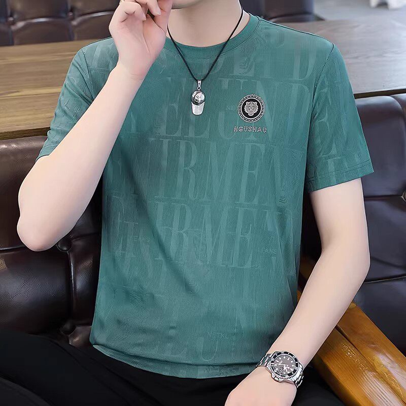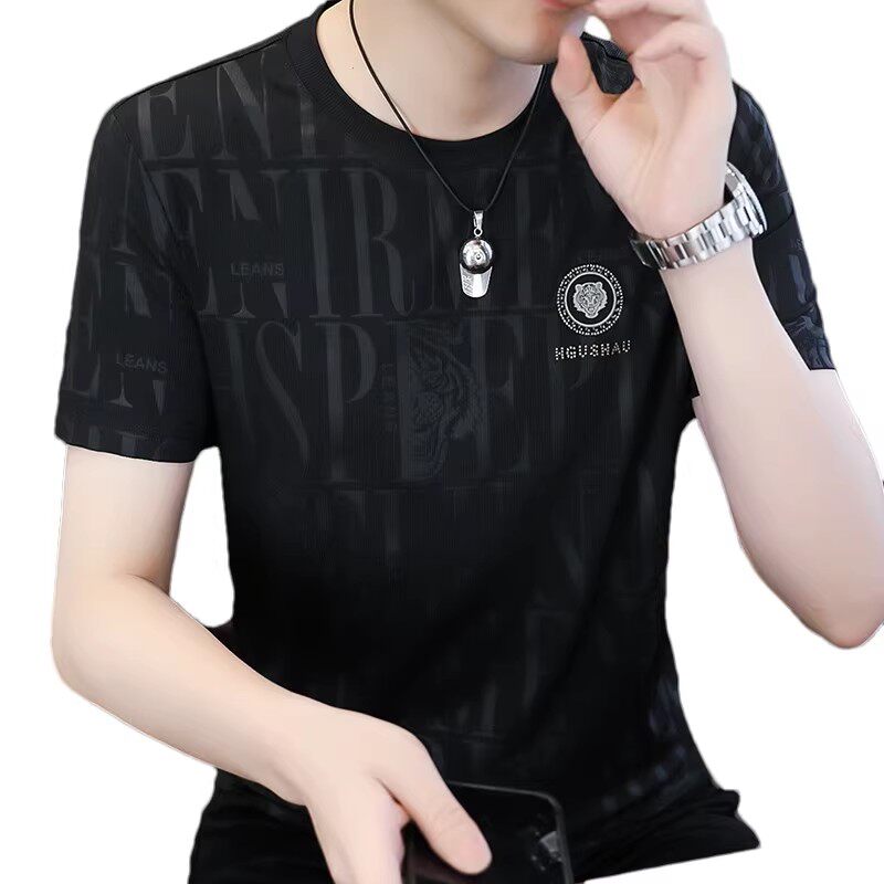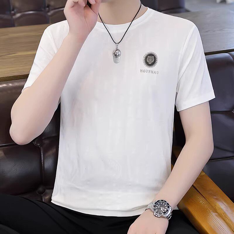 胖子体恤衫 男士 大码 t恤宽松冰丝潮牌高端白色男装 衣服潮流男 短袖