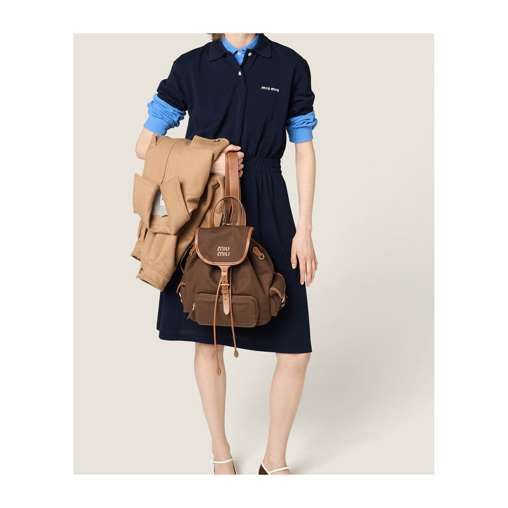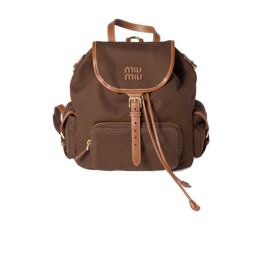 棕色 MIU 5BZ0422IBQVOOOF04KB 帆布皮质背包 女士双肩包