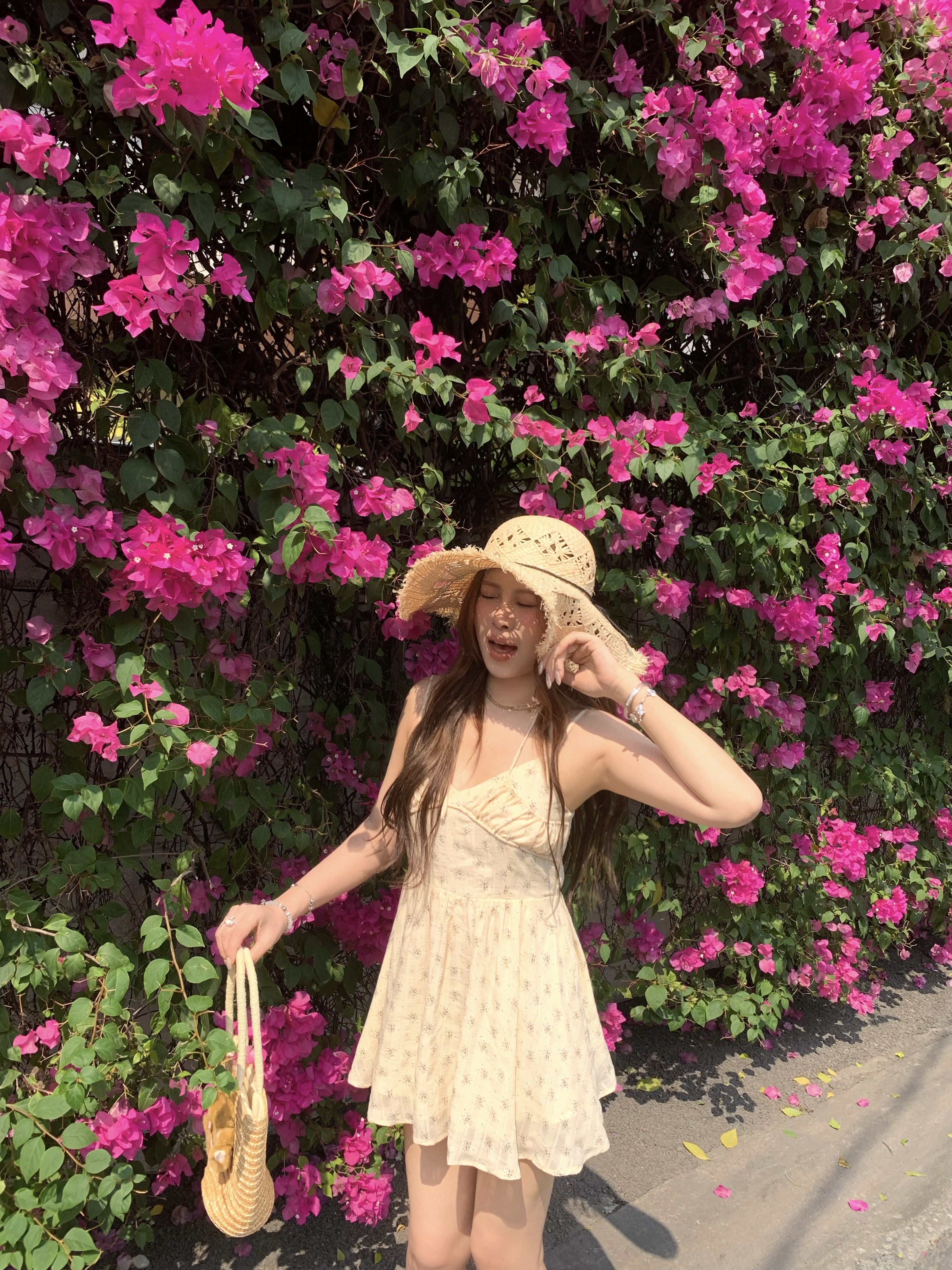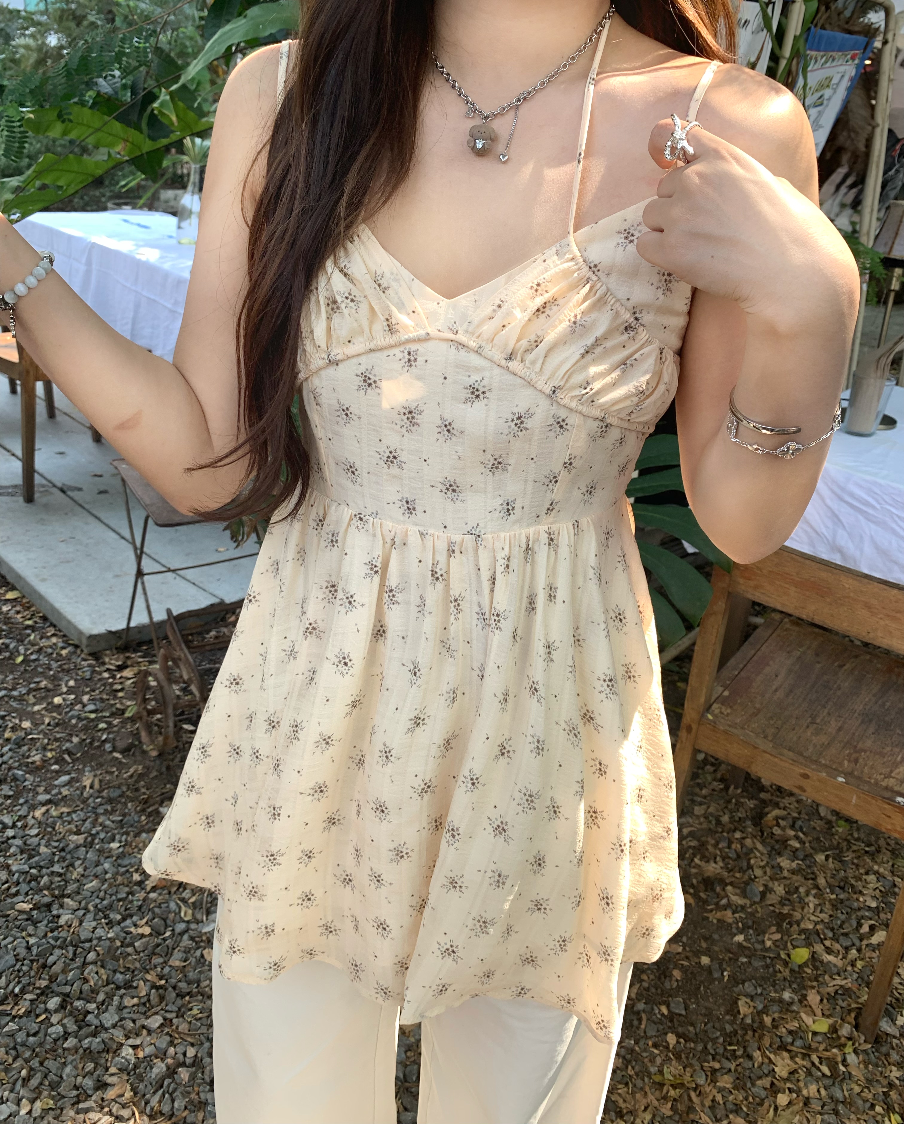 宅宅Athome 小碎花甜美吊带连衣裙V领显瘦纯欲度假裙 伊甸春园