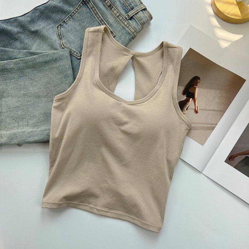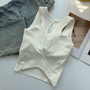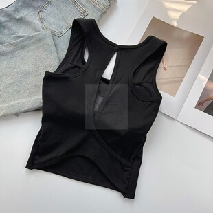 性感镂空美背背心女外穿短款 打底辣妹上衣 吊带内搭带胸垫一体无袖