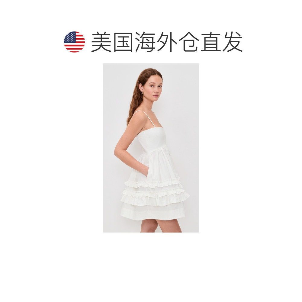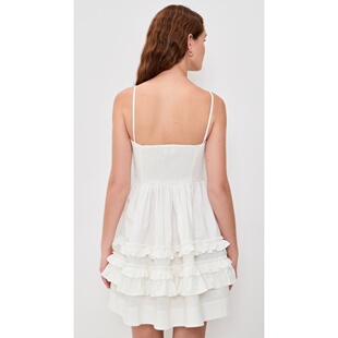 弹力棉质迷你吊带褶边连衣裙 女士 香港直邮GANNI 甘尼