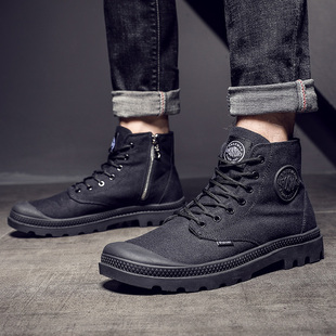 拉链帕拉同款 马丁靴布鞋 男靴百搭复古 中帮男鞋 帆布鞋