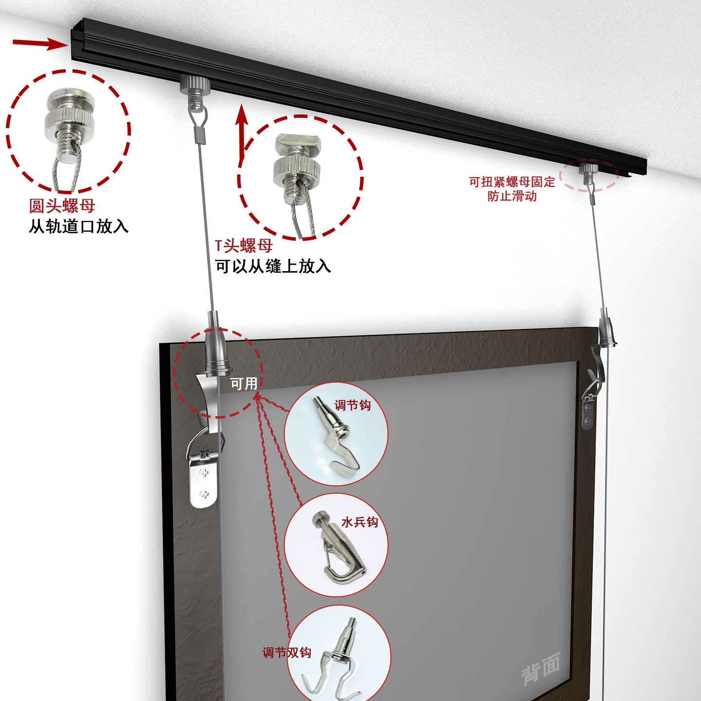 隐形挂画轨道条挂画器吊码 钢丝绳家用挂画线画廊画展画室挂画神器