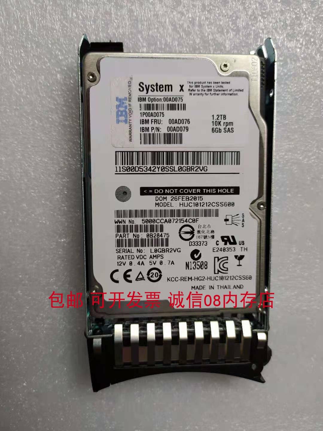 1.2T 10K SAS IBM X3500M2 00AD076 2.5硬盘X3300M4 X3400M3 FRU