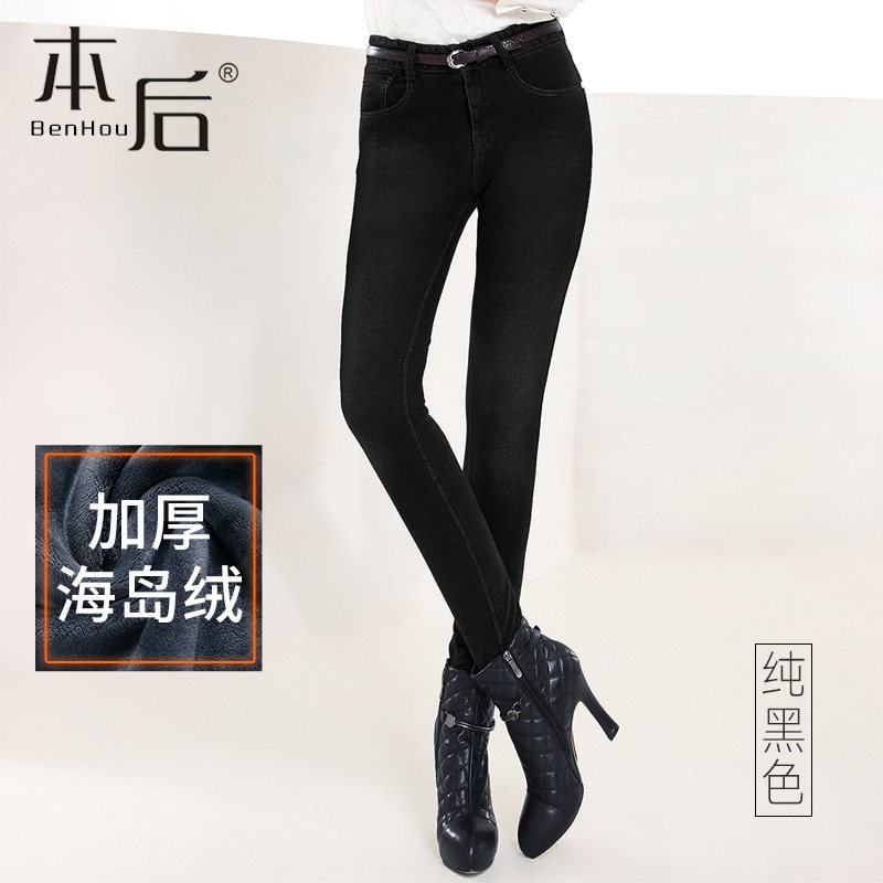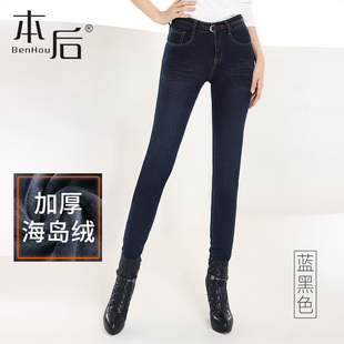 带绒大码 加绒牛仔裤 外穿加长小脚裤 冬季 四面弹力 女高腰显瘦加厚款