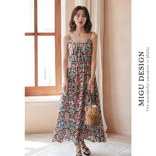 弥古波西米亚吊带连衣裙女夏季 民族风沙滩裙三亚度假长裙海边裙子