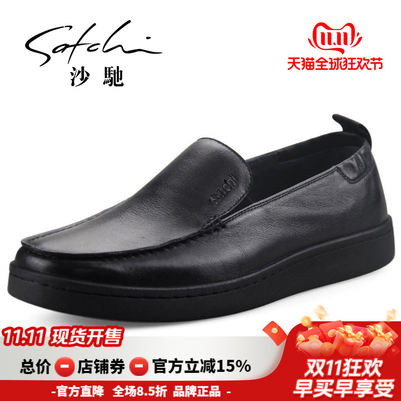 轻便鞋 沙驰男鞋 驾车鞋 男套脚透气软皮软底真皮皮鞋 英伦商务休闲鞋