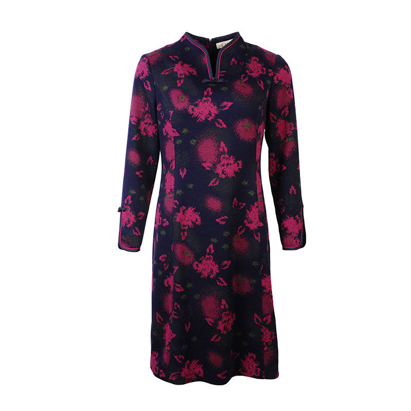 中老年女装 妈妈款 时尚 千瑶优雅 长款 新款 印花修身 连衣裙设 秋季