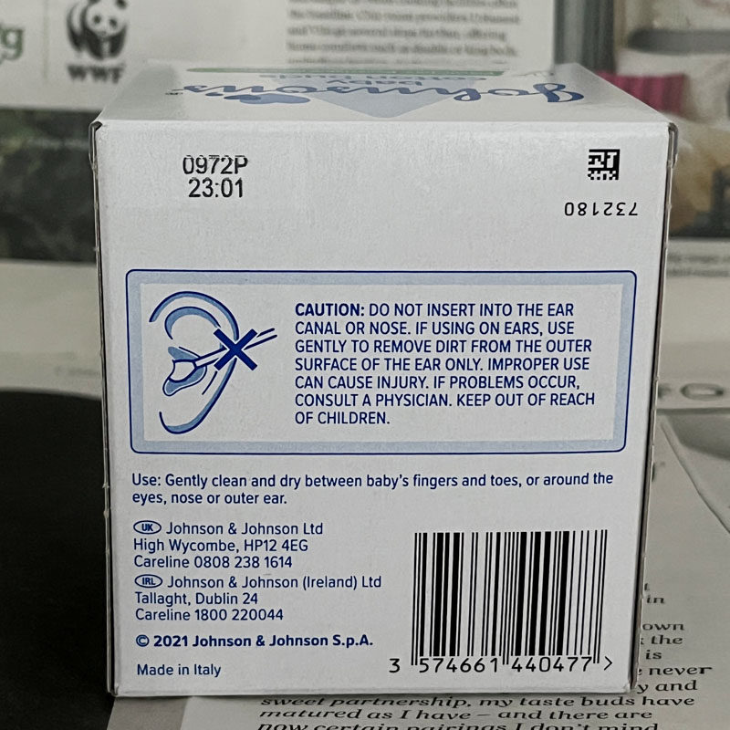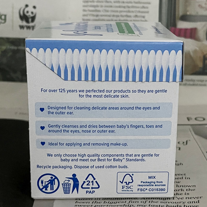 英国原装 进口Johnson强生婴儿宝宝儿童棉签200双头无菌棉棒纸盒装