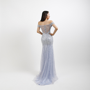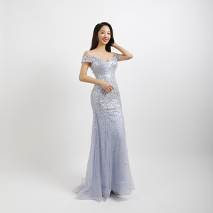 浴技师工作 夜场女足袖 高档夜总会性感洋透明长裙无鱼尾晚装 礼服装