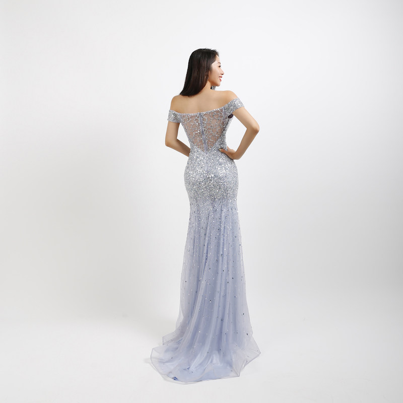 气质 开叉包臀礼服长裙时尚 车模一字肩晚装 女K歌沐足会所工衣修身