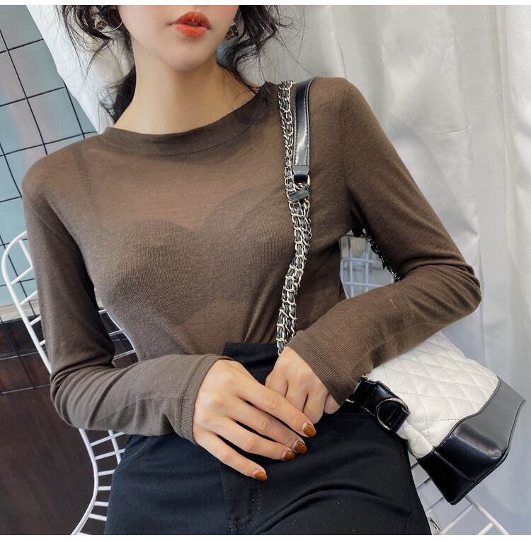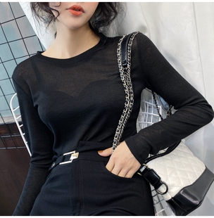 透视上衣冰丝内搭新款 基础款 性感长袖 t恤女薄款 2020秋 微透打底衫
