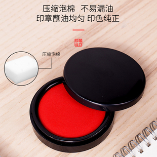 秒干速干适用红色圆形印油财会用品印泥盒 快干秒干印泥办公用品印台财务便携式 得力红色印台 油性
