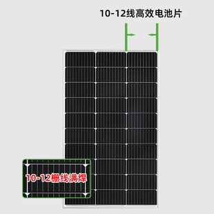 单晶硅100W太阳能板12V光伏充电板家用发电板200瓦电池板18伏供电