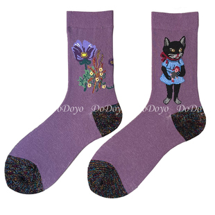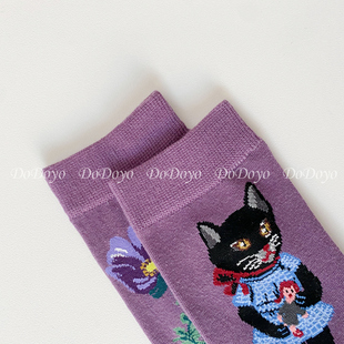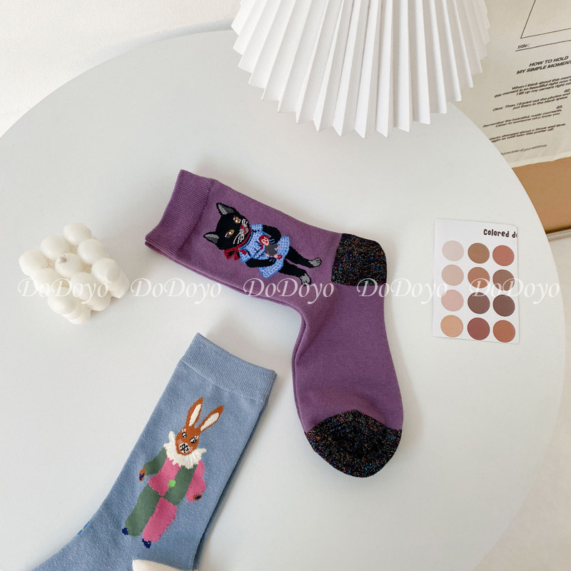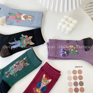 松鼠兔子INS个性 新款 长袜 可爱小猫咪袜子女AB中筒韩国春季 洞洞妖