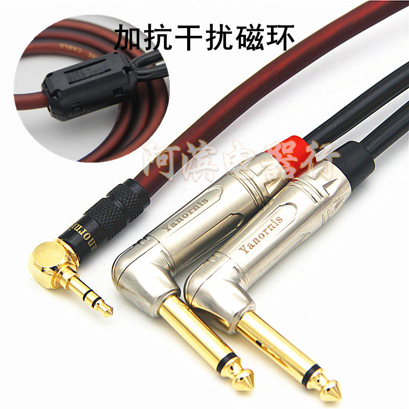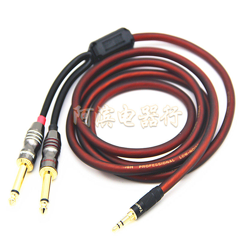 3.5转双6.35大二芯纯铜音频线3.5转6.5一分二电脑声卡调音台连接