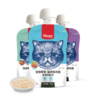 Wanpy顽皮猫鲜肉羹90g 4包猫湿粮猫罐头猫咪零食鲜封包猫零食肉条