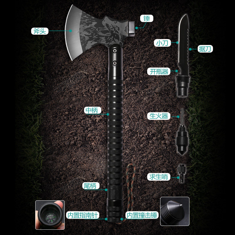 战狼斧多功能户外野营消防斧头开山大砍工兵斧子求生斧劈柴斧战斧