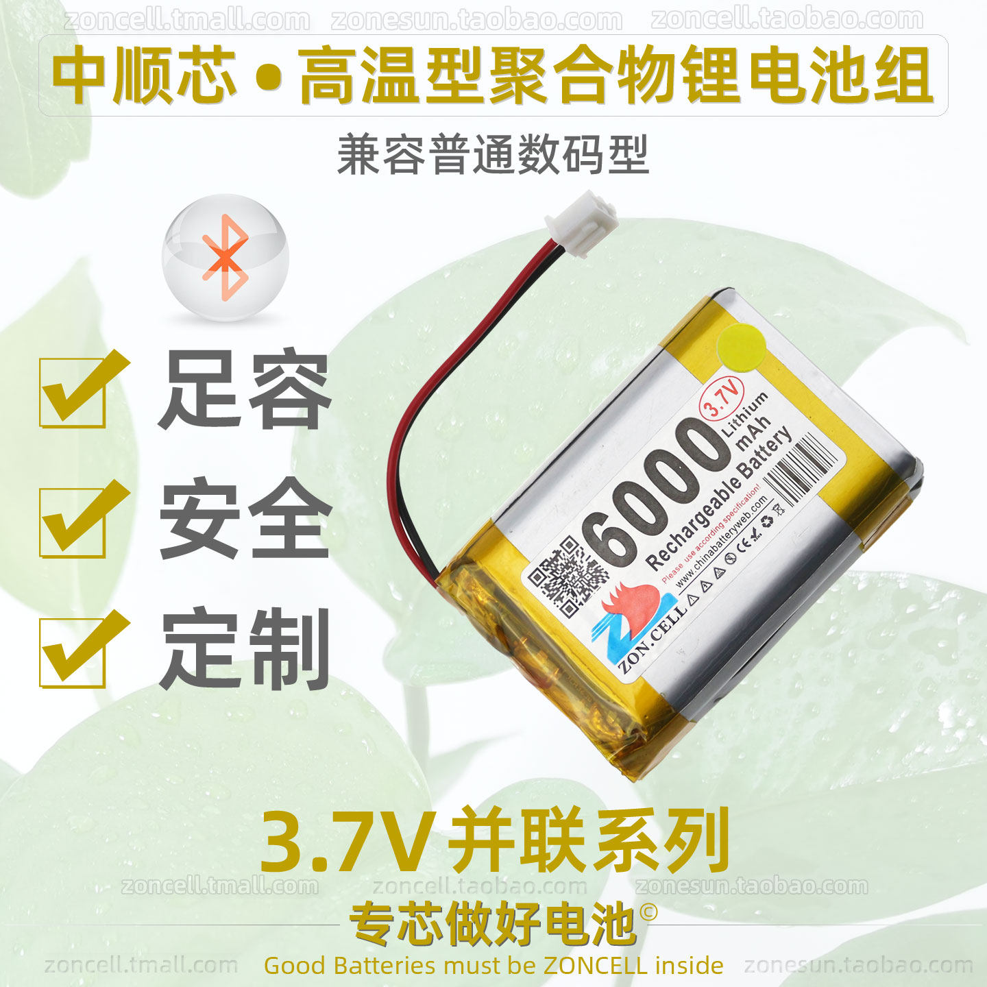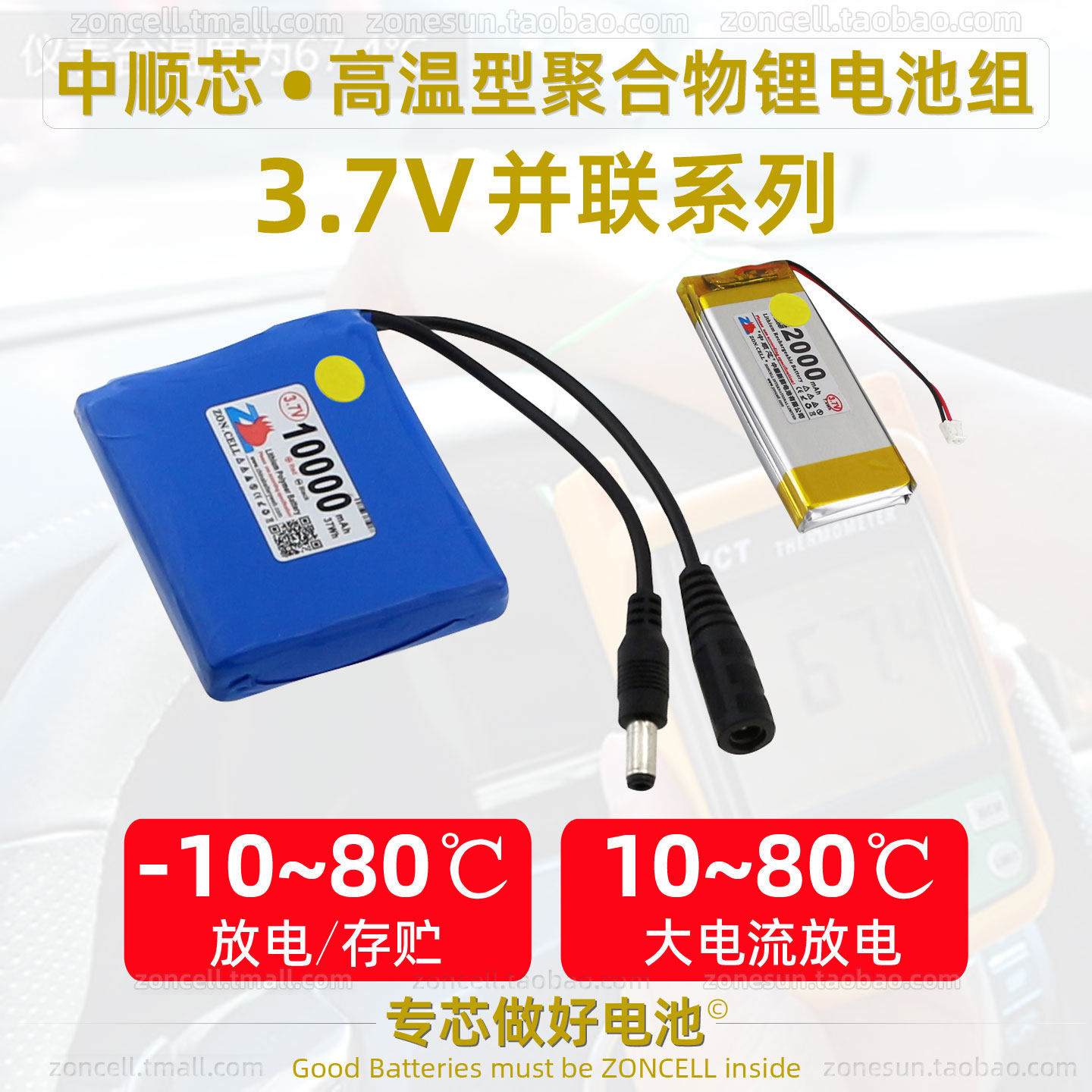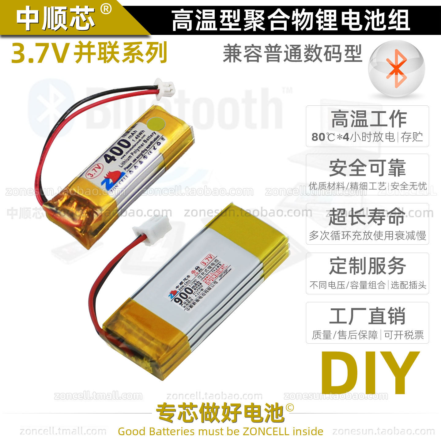 中顺芯 LED灯加热器冷注塑无线蓝牙高温型并联聚合物锂电池组3.7V