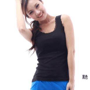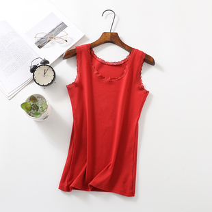 蕾丝花边圆领纯棉修身 小吊带背心女潮春夏纯色显瘦加肥加大打底衫