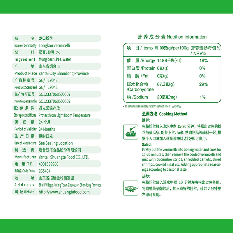 双塔正宗龙口粉丝方便速食锡纸花甲扇贝凉拌粉丝粉条干货450g袋装