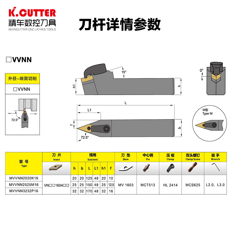 数控外圆车刀刀杆72.5度MVVNN1616H16 2525M16菱形尖刀片 2020K16