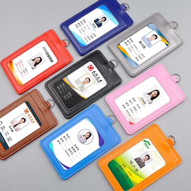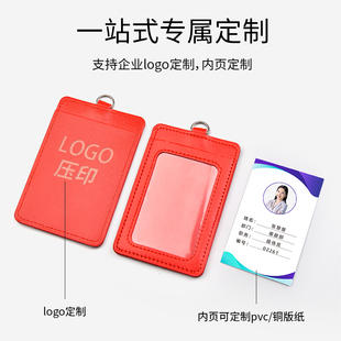 鑫锐双层皮质证件卡证件套胸牌卡套工作学生公交门禁卡挂牌工作证保护套带挂绳定制厂牌学生校园员工吊牌公交