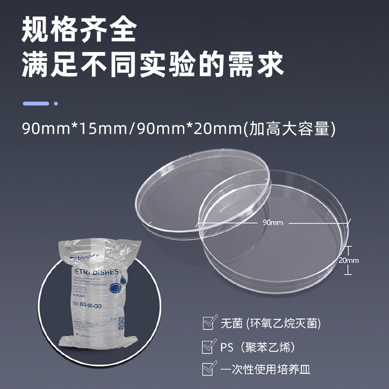 biosharp 90mm一次性塑料微生物培养皿 细菌培养皿 白鲨