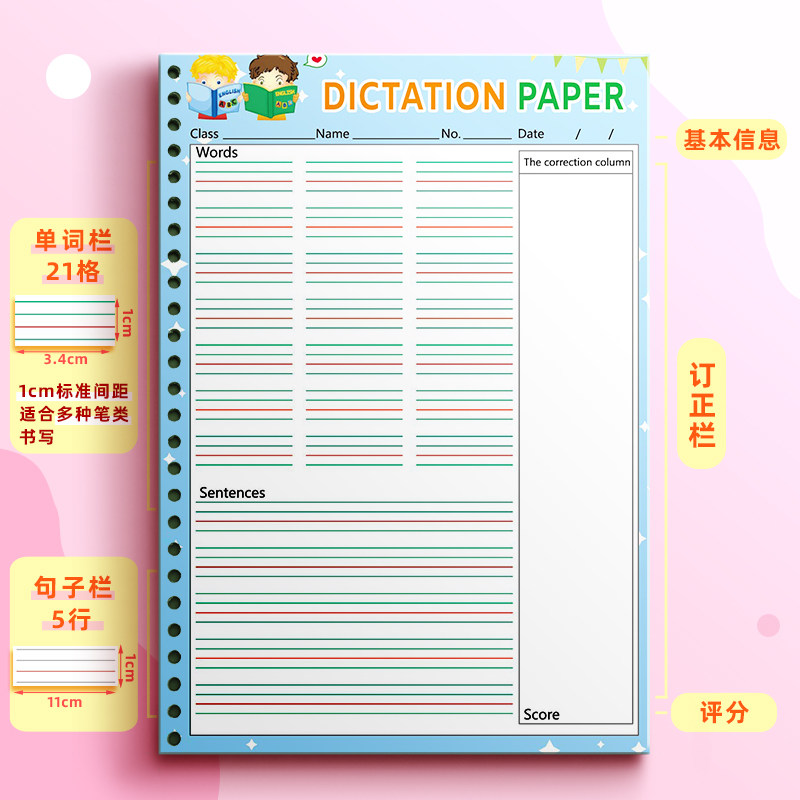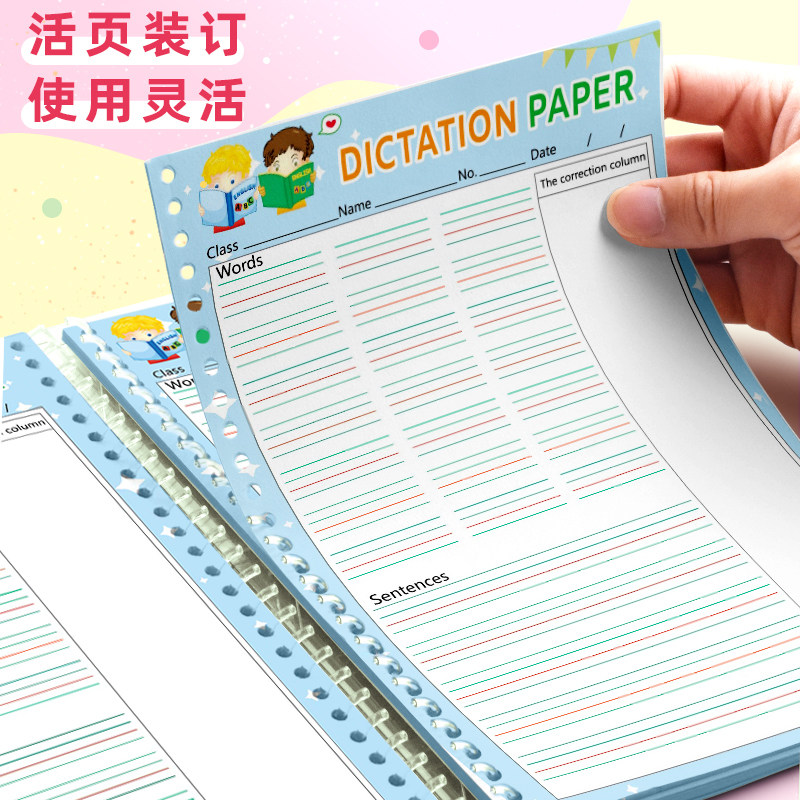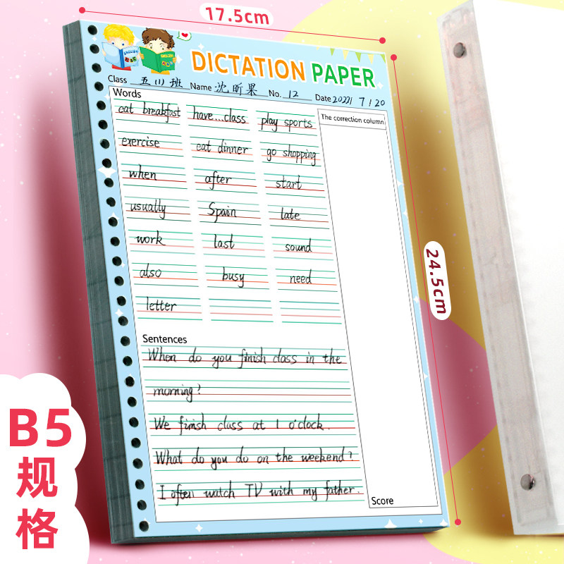 英语每日听写本b5活页可拆卸记忆英文单词速记默写本小学初中生四线三格抄写纸记背英汉互译拼写练习纸作业纸