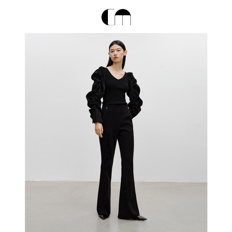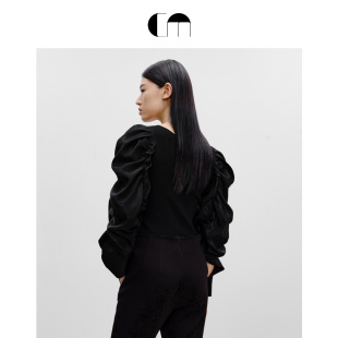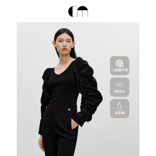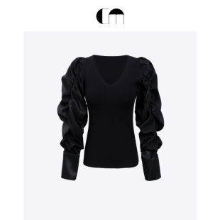 修身 针梭拼接V领泡泡袖 上衣 MOI吕燕设计师早春女装 COMME