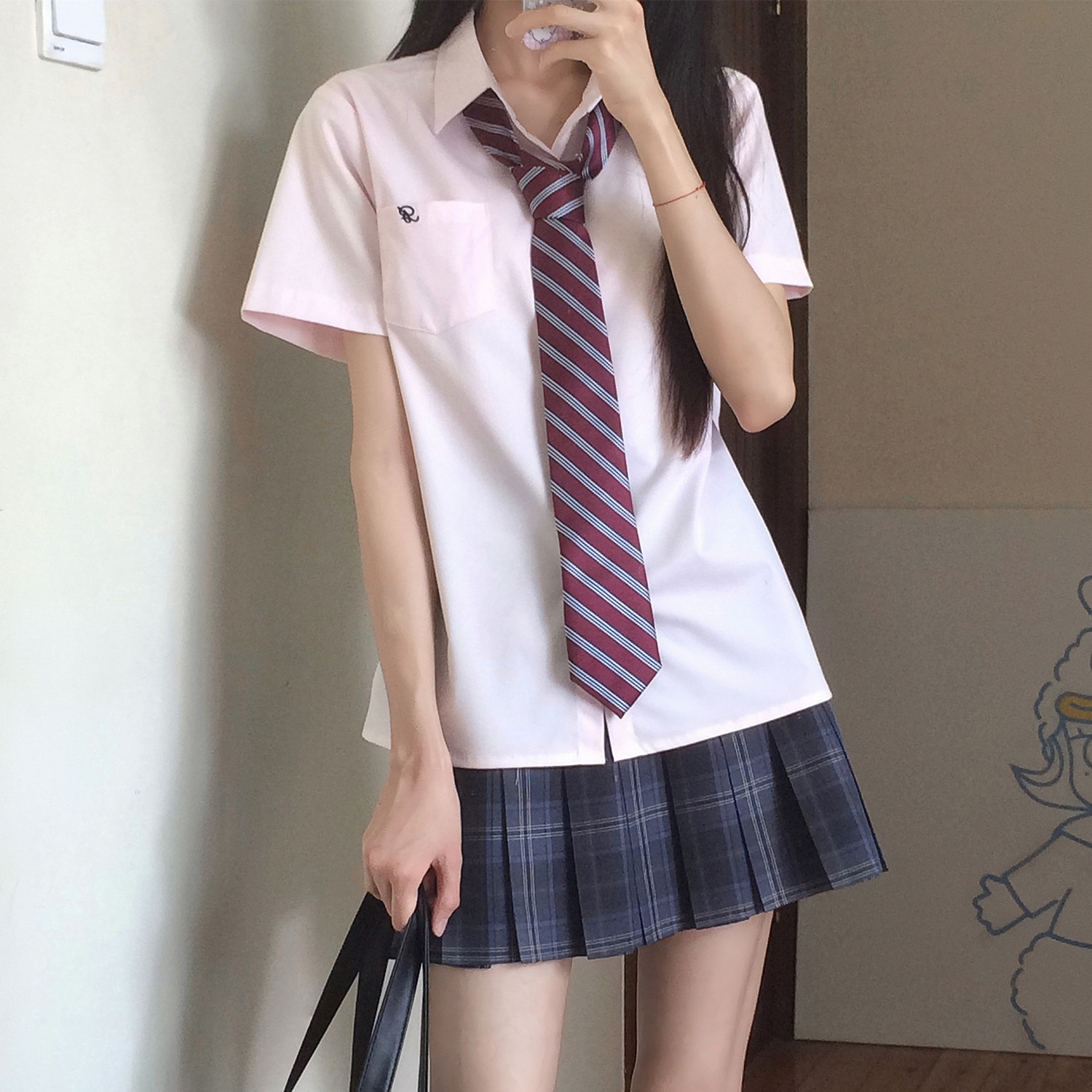 学院风校供感百搭上衣 jk制服白色粉色短袖 花千猪原创 小竹町衬衫