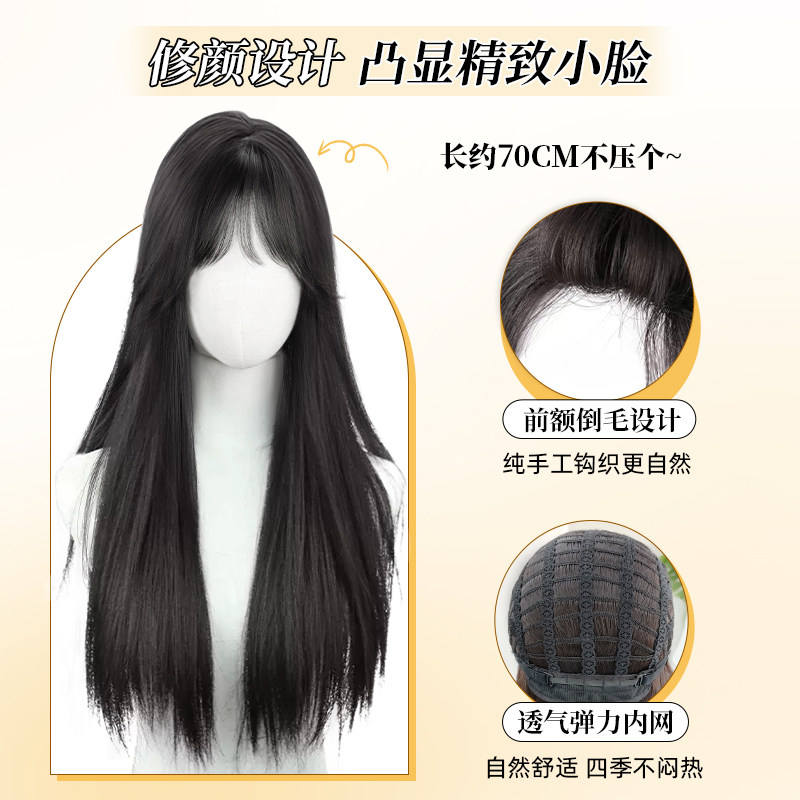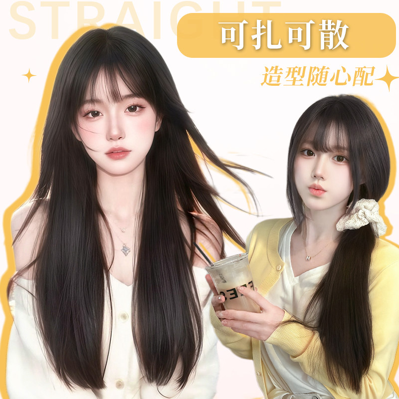 假发全头套女长发夏天薄款 齐刘海温柔黑长直仿真人发日常整顶假发