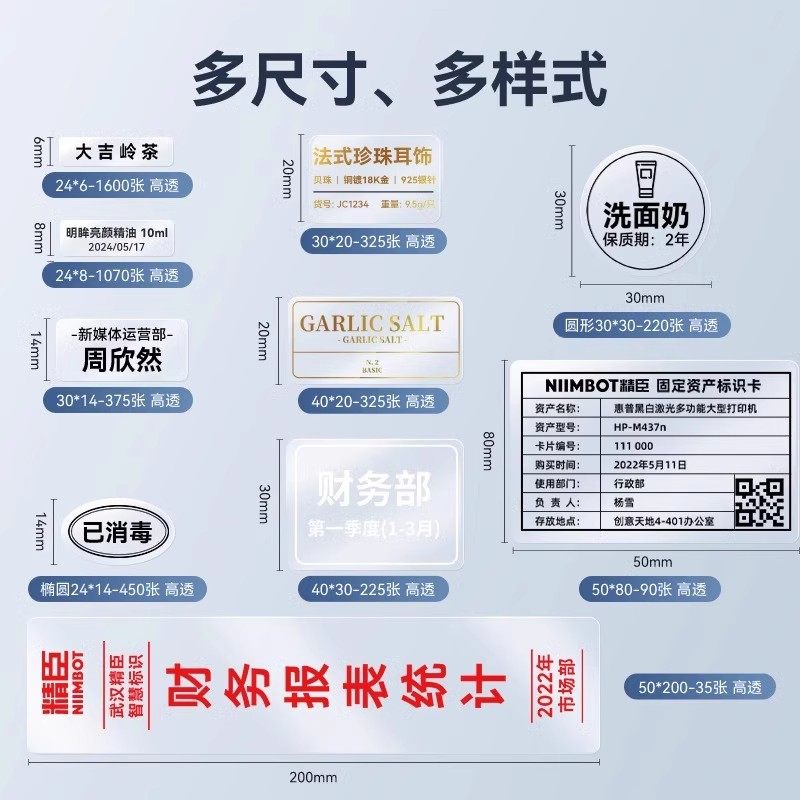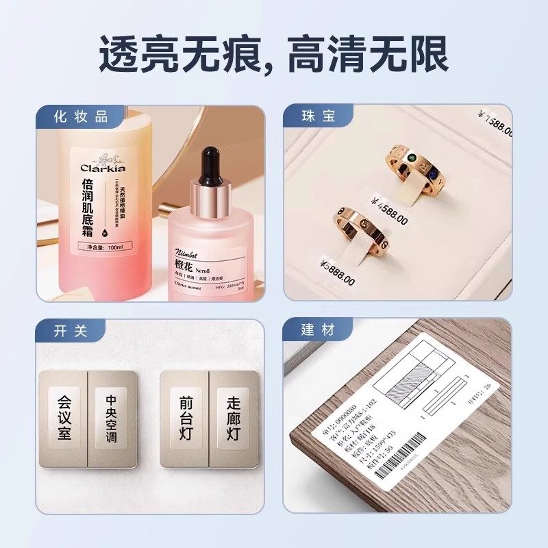 Z401透明标签纸不干胶背胶热转印打印纸打码 B32 纸防水撕不烂空白化妆瓶方形圆形封口贴定制贴纸 精臣M2