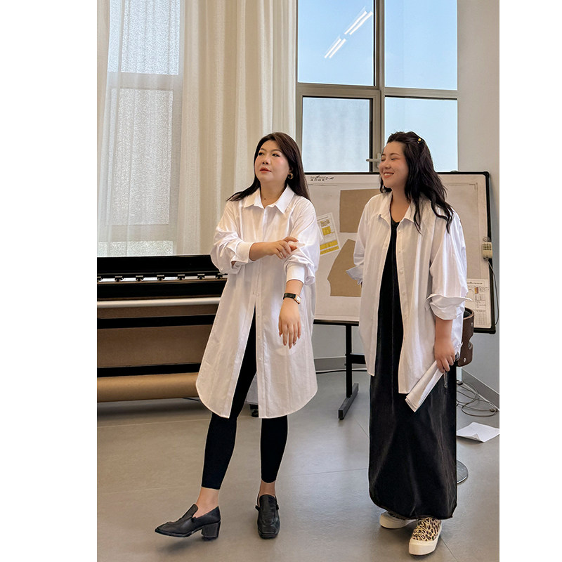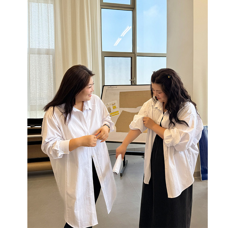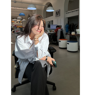 胖mm宽松休闲松弛感插肩袖 简约大方白衬衫 衬衣秋 女装 木子理想大码