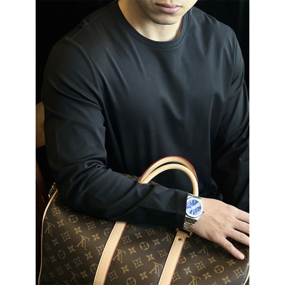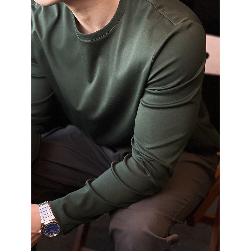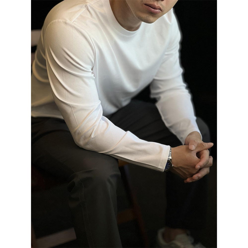修身 男士 上衣秋 T恤纯棉防皱打底衫 简素Design190g双面丝光棉长袖
