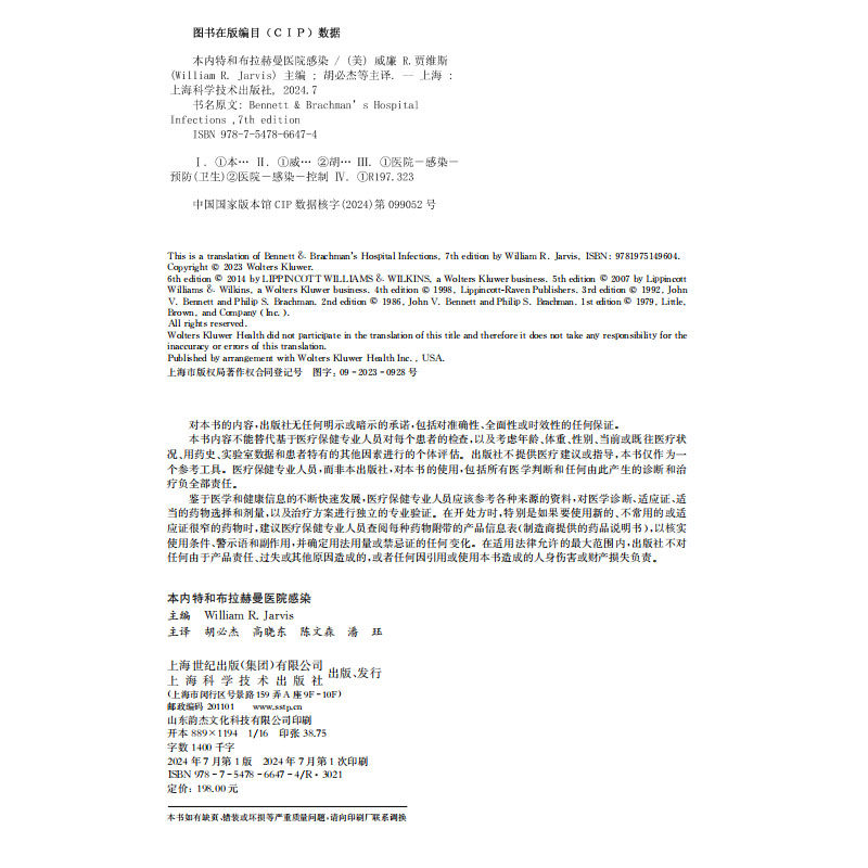 William 本内特和布拉赫曼医院感染 Jarvis 社9787547866474 正版 上海科学技术出版 2024新书