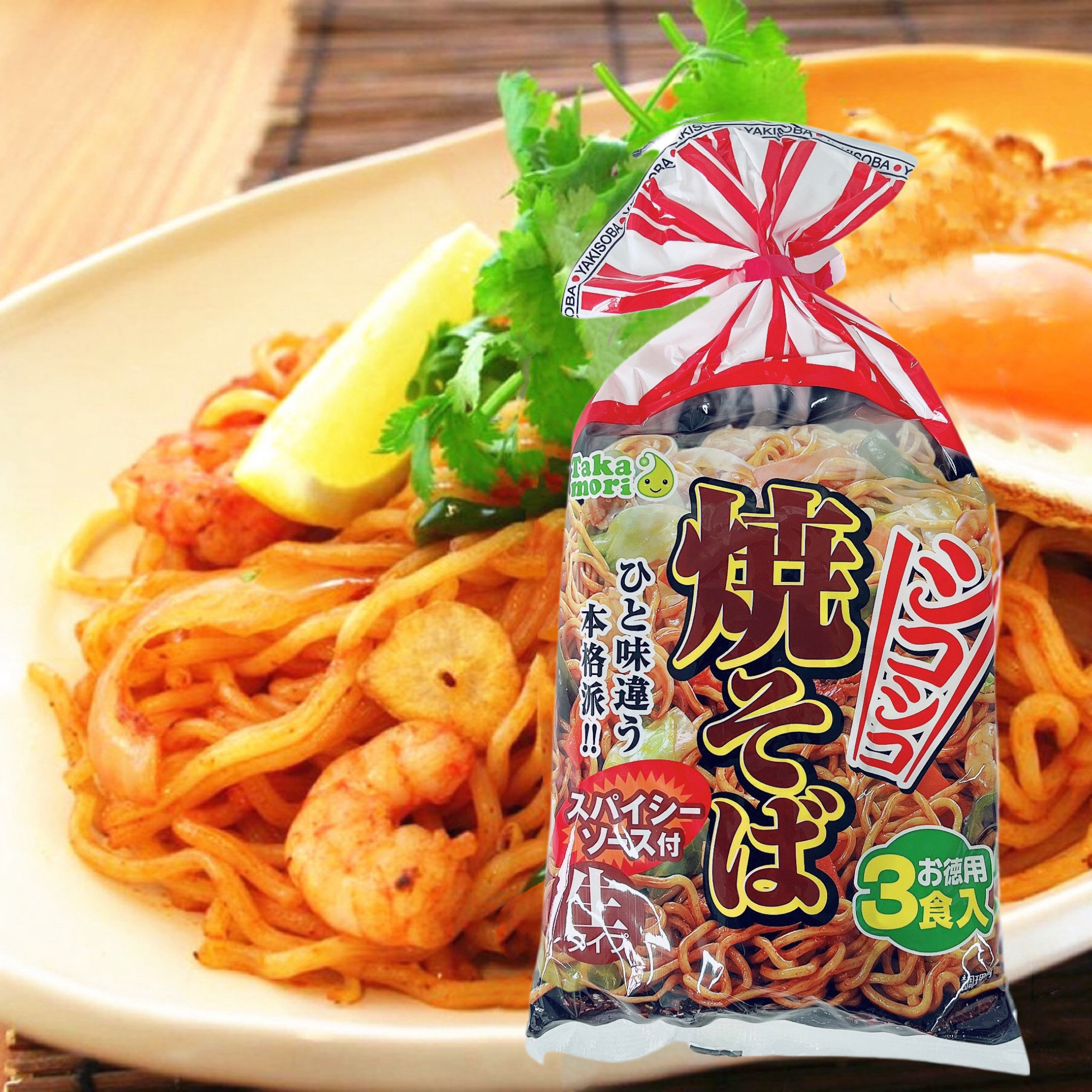 日本进口高森炒面474g3人份非油炸炒拉面含料包铁板速食方便面
