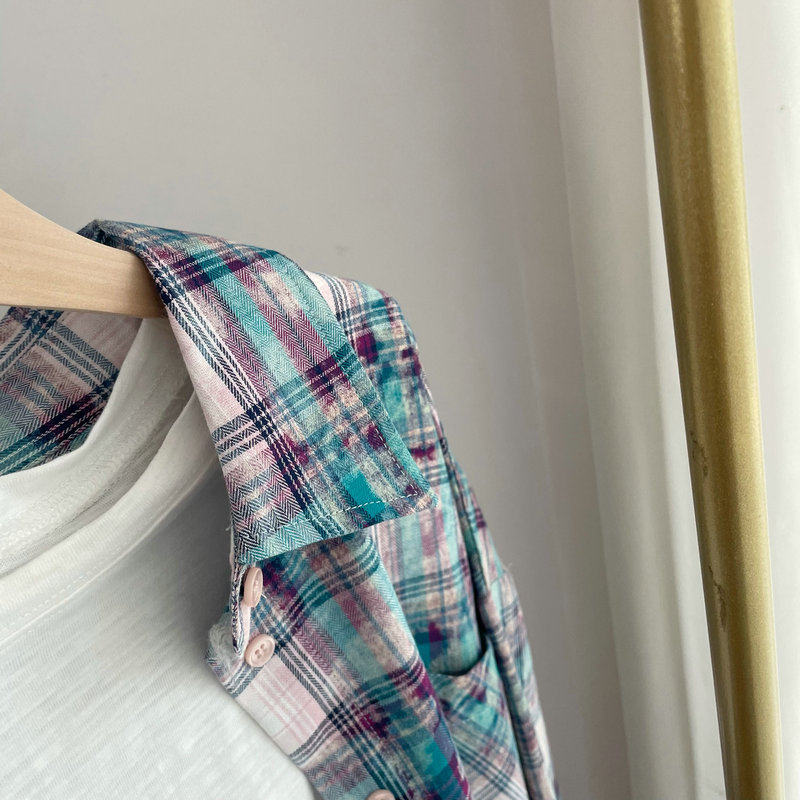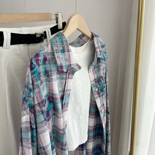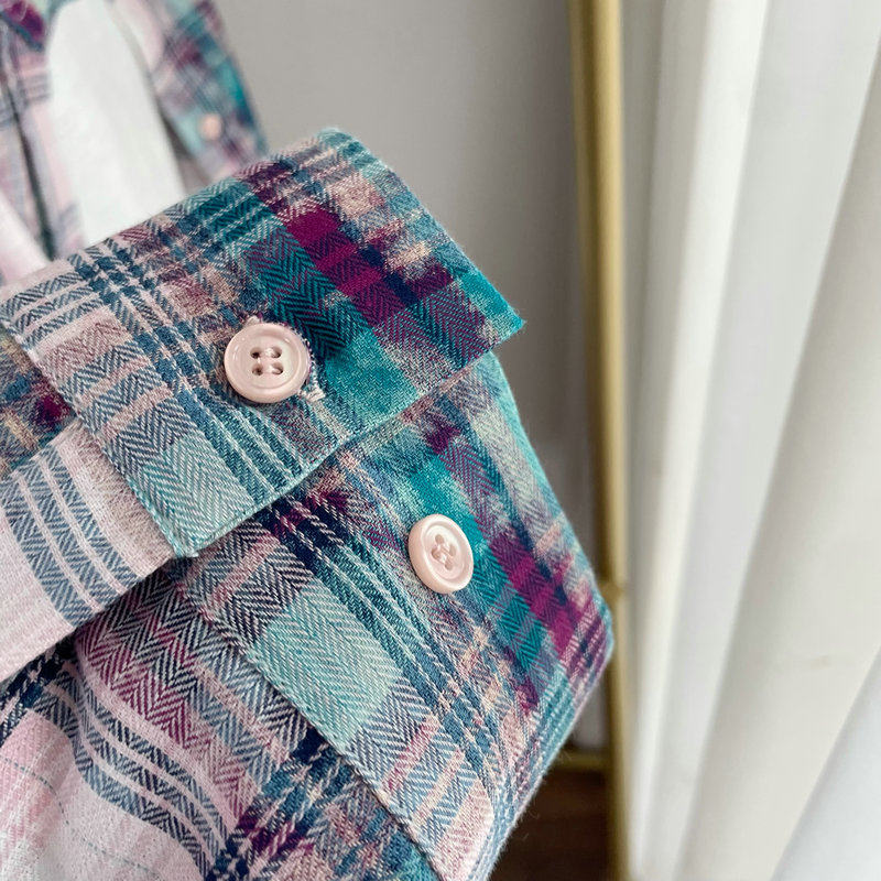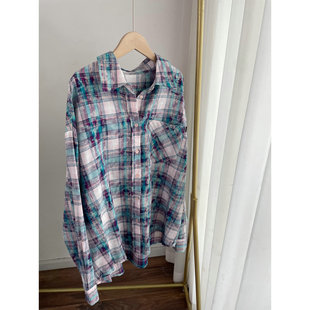 女秋冬宽松显瘦叠穿衬衣上衣 衬衫 显白复古格纹韩版 磨毛加厚长袖