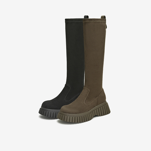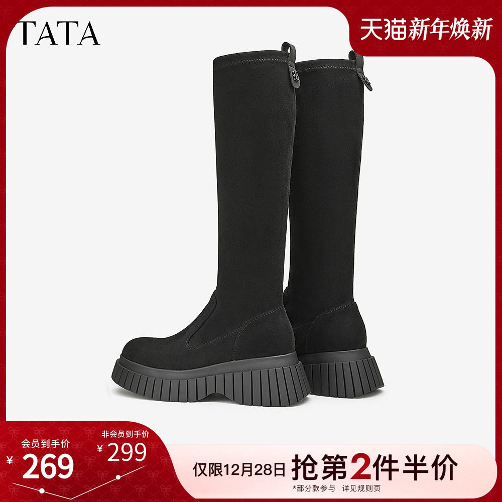 Tata他她厚底显瘦长筒靴女靴子气质瘦瘦靴弹力靴2024新CAC02DG4