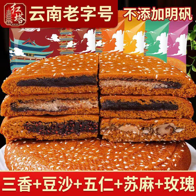 云南特产红塔大荞饼400克荞三香五仁苦荞中秋月饼荞麦豆沙馅糕点