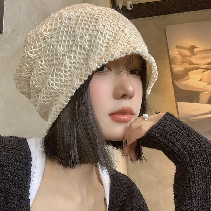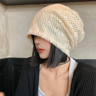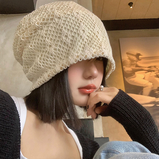 手工镂空针织帽子女2025新款 编织毛线帽包头帽 显脸小冷帽秋冬薄款