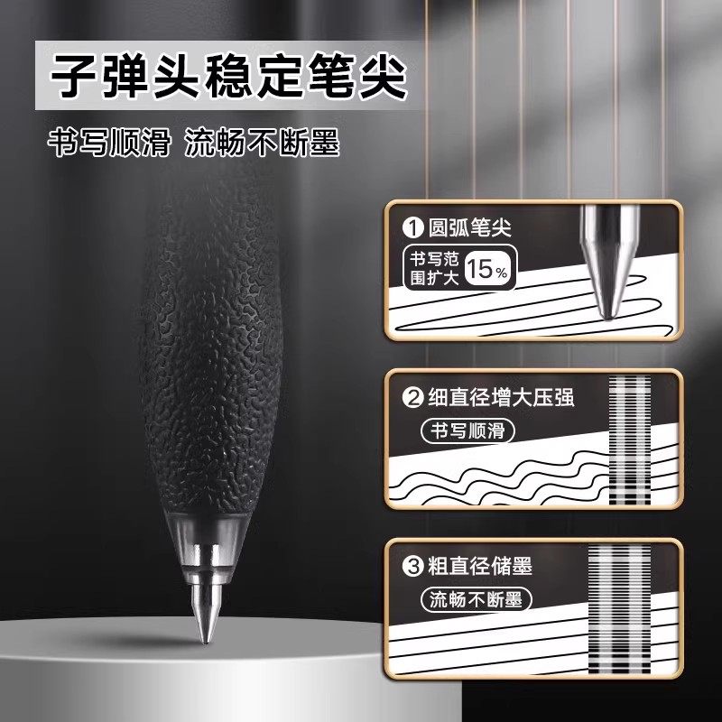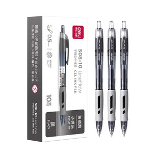 得力S08笔中性笔按动黑色速干顺滑考试专用蓝色小学st笔头子弹头刷题笔初中生签字笔圆珠笔黑笔红按压式 笔芯