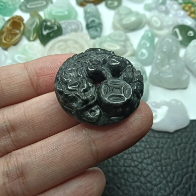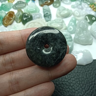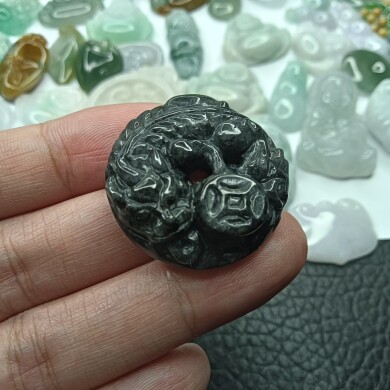 缅甸天然翡翠玉乌鸡平安扣貔恘