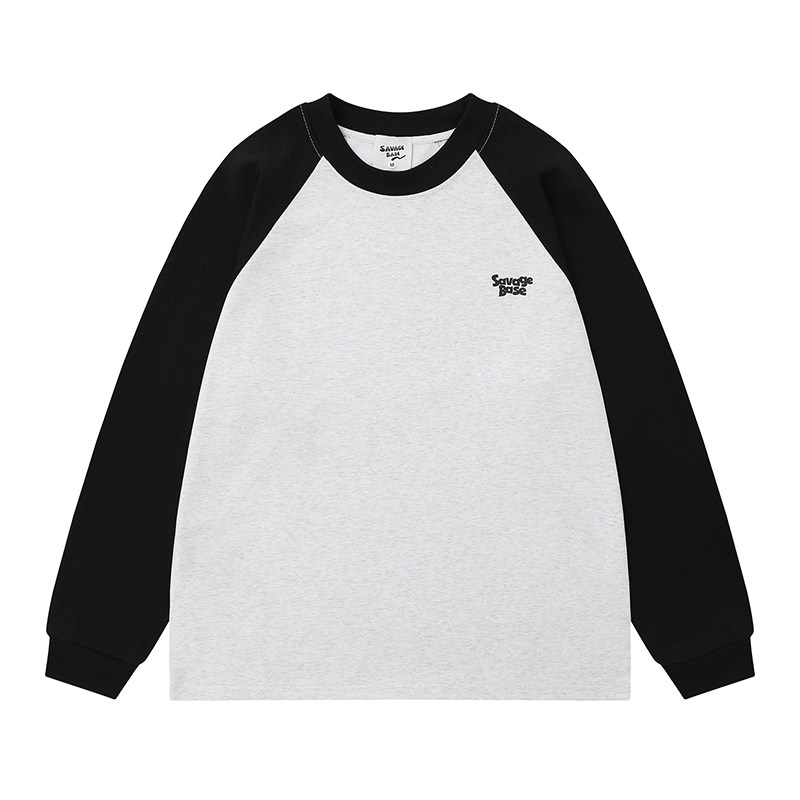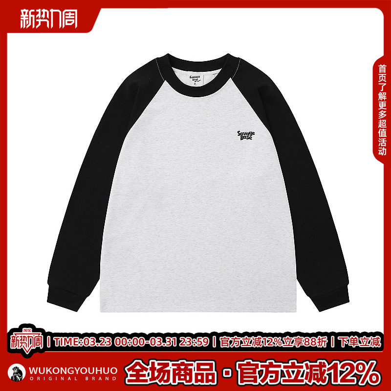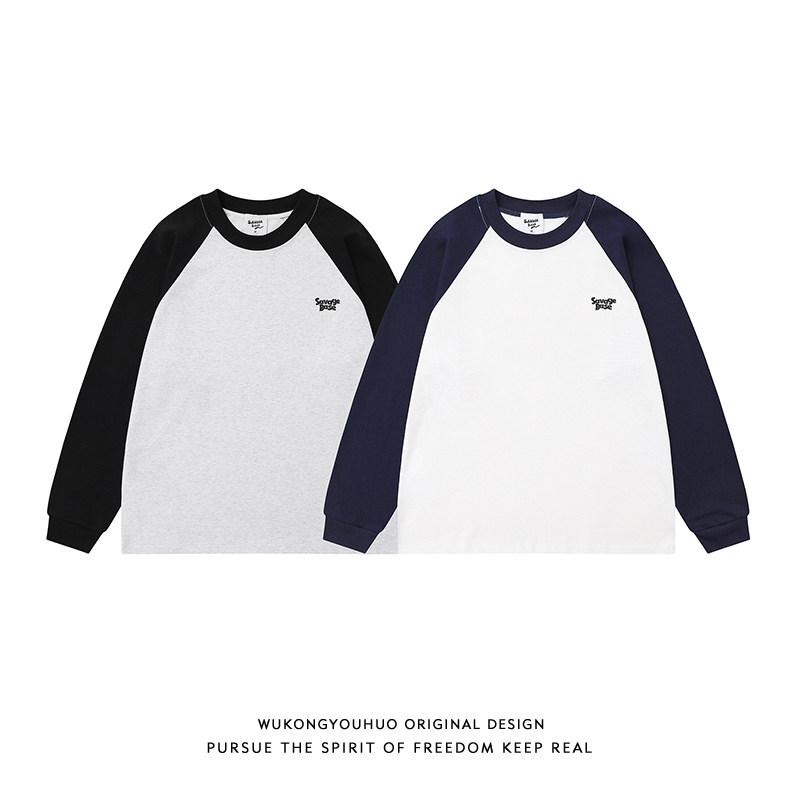 悟空有货秋季 T恤男女潮牌宽松情侣百搭休闲体恤 复古撞色插肩长袖