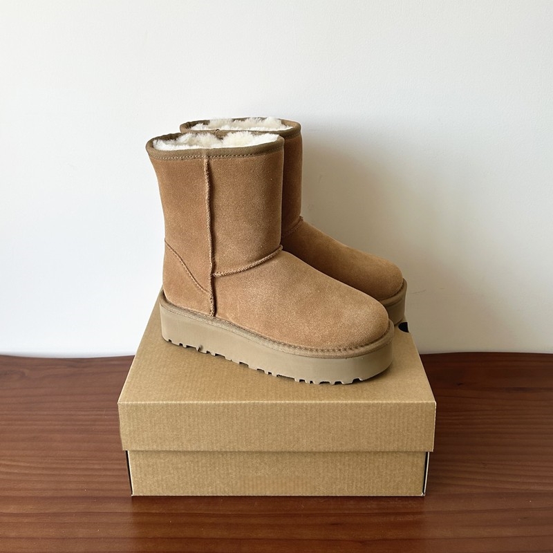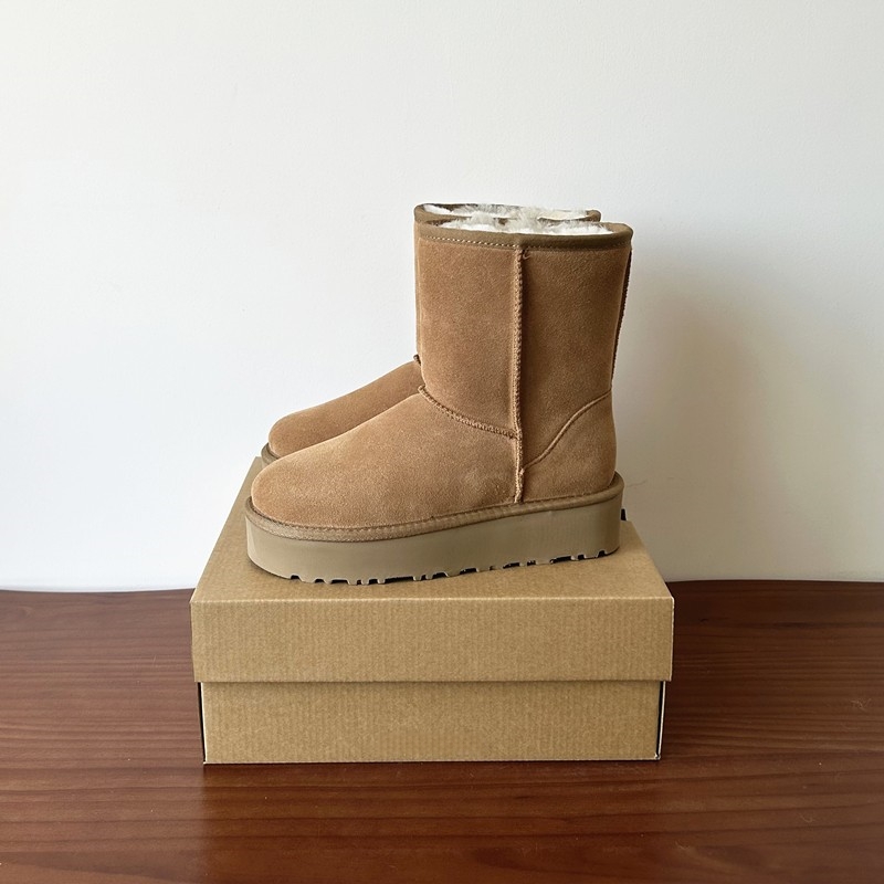河南桑坡羊皮毛一体真皮羊毛厚底雪地靴女中筒冬季 加厚保暖大棉鞋