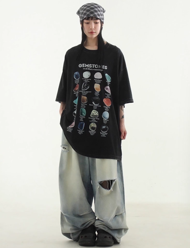 printed cotton half 韩国代购 unisex tee 棉质印花T恤 24S