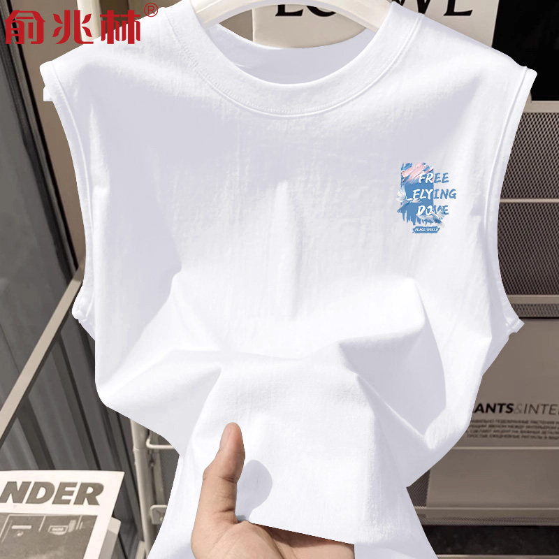休闲坎肩 t恤男女同款 纯棉背心男夏季 海边度假风清爽椰树白色无袖