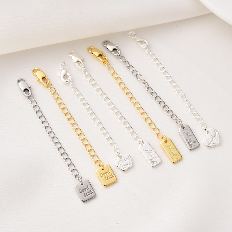 铜镀18K金高保字母吊牌尾链手工diy手链项链延长链银色白金加长链