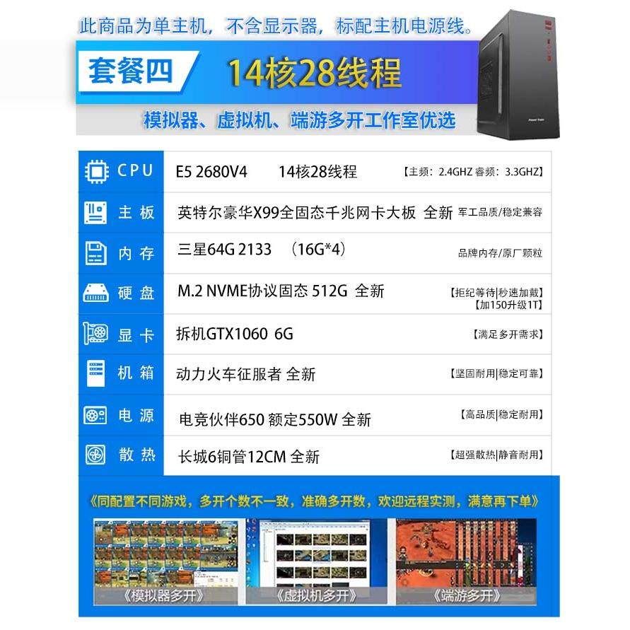 14核至强e5主机2680V4模拟器游戏e5工作室多开电脑主机服务器双路
