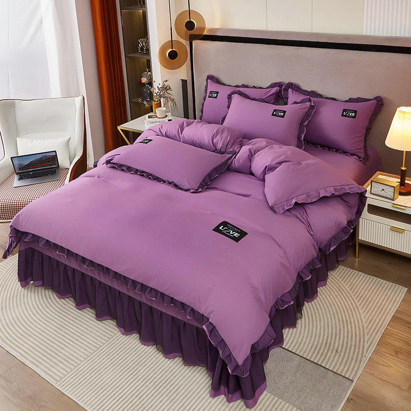床上用品 全棉被套床单床裙款 韩式 花边四件套纯棉水洗磨毛2025新款